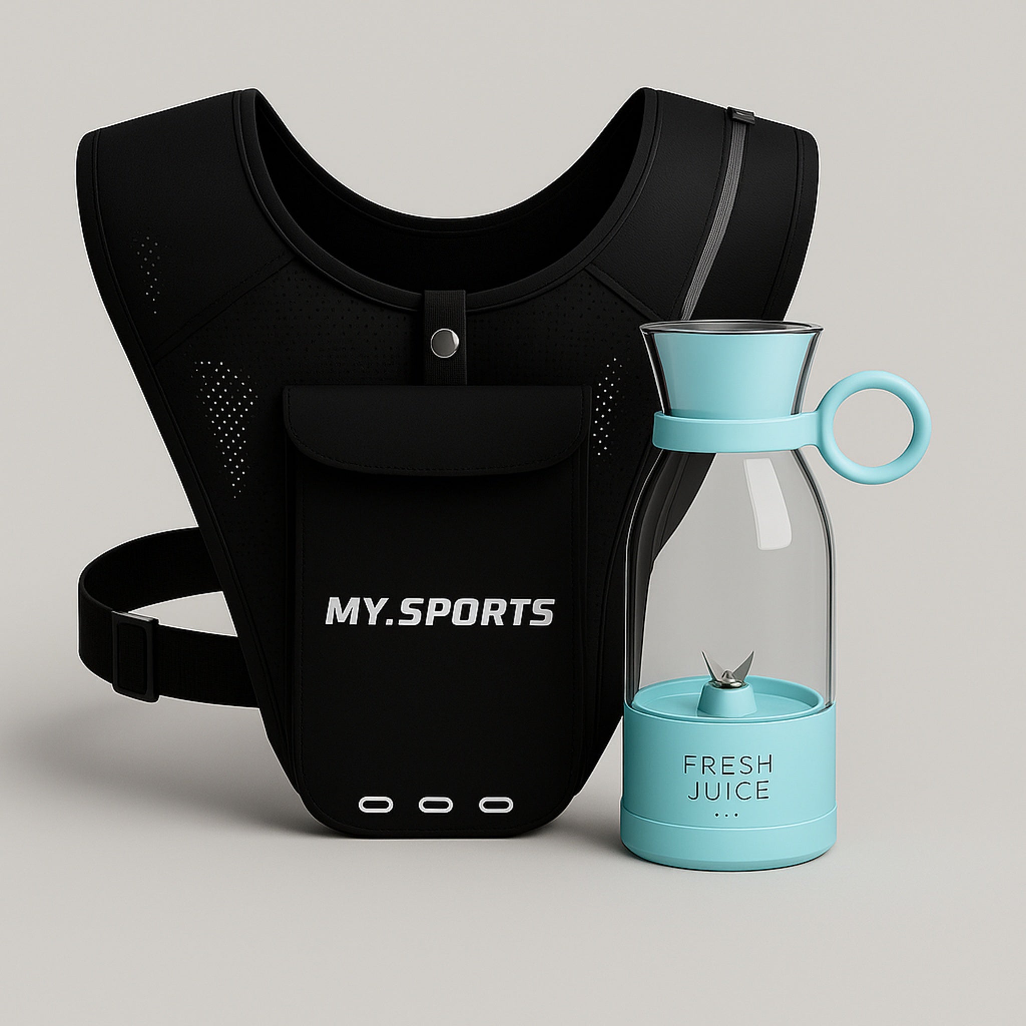 MySports Løbevest Brystlomme til mobil altid nem adgang Ekstra rum til nøgler. AirPods eller også energigel Reflekser øget synlighed i mørke Justerbar let pasform komfortabel til løb. Hiking og gåture Fresh Juice Bærbar Blender Genopladeligt batteri bl