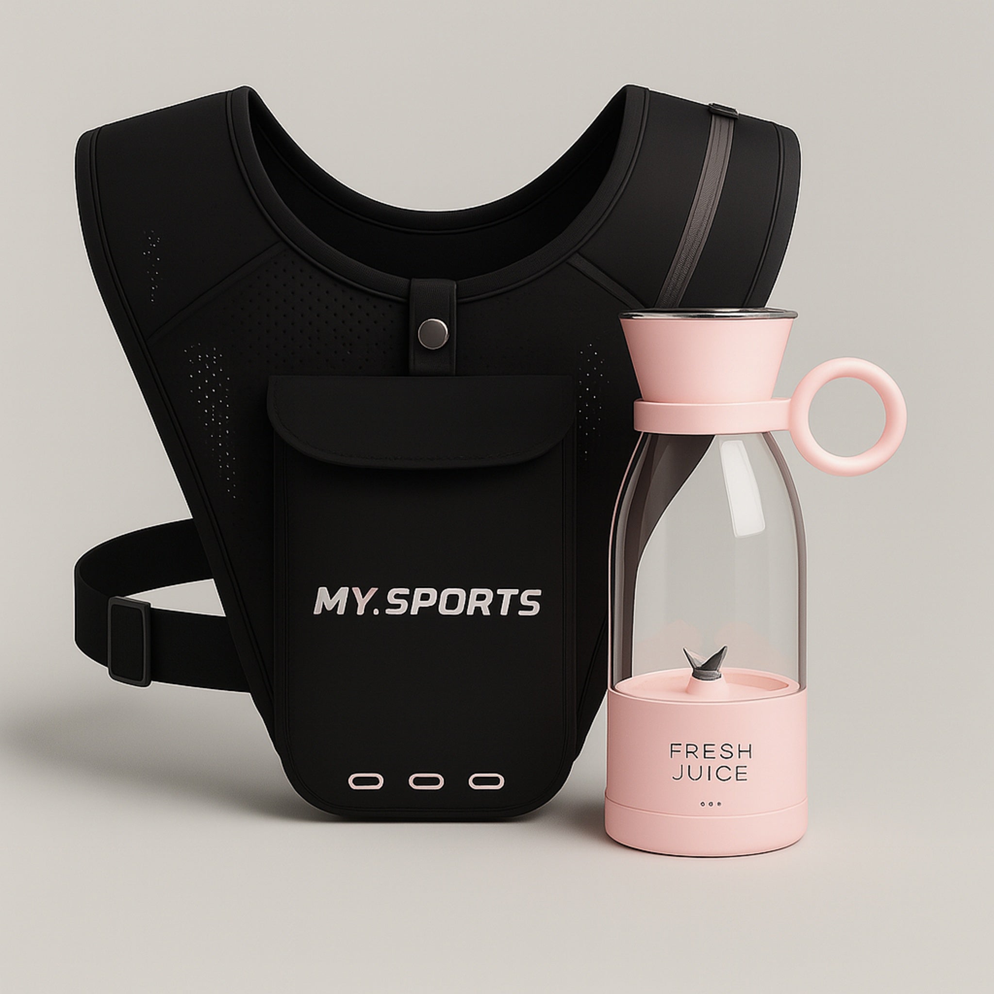 MySports Løbevest Brystlomme til mobil altid nem adgang Ekstra rum til nøgler. AirPods eller også energigel Reflekser øget synlighed i mørke Justerbar let pasform komfortabel til løb. Hiking og gåture Fresh Juice Bærbar Blender Genopladeligt batteri bl
